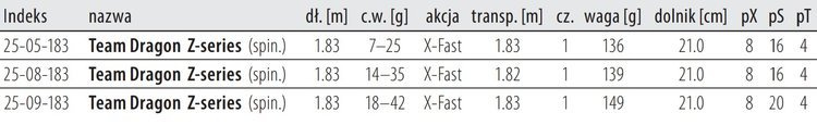 bardzo szybki kij 42-gramowy. Umożliwią dobranie sprzętu do większości przynęt stosowanych w rzekach do połowu kleni, boleni, sandaczy czy szczupaków.