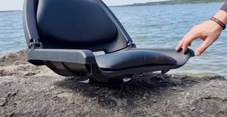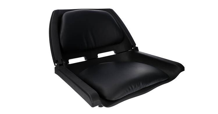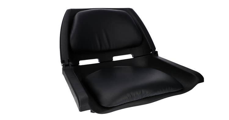 Świetnej jakości składany fotel obrotowy w komplecie z przykręconą, ułożyskowaną obrotnicą. Idealne rozwiązanie zarówno do wyczynowych siedzisk jak i ławeczek łodzi czy pontonów.