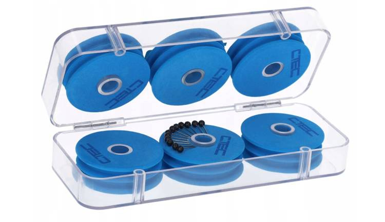 Zawiera 6 piankowych krążków i 12 pinesek ułatwiających organizację gotowych zestawów.