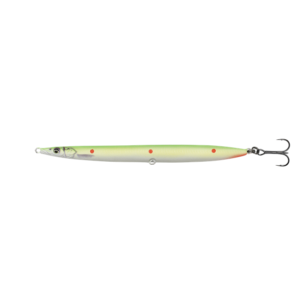 • SANDEEL PENCIL 9CM 13G SINKING FLUO GREEN RED DOTS Savage Gear (72353)