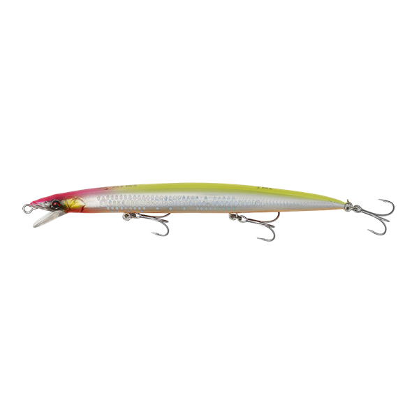 Sandeel Jerk Minnow Floating Opracowany na podstawie skanowania 3D prawdziwego dobijaka, który przypomina także młodą belonę. Bardzo smukły kształt w połączeniu z super naturalną pracą czynie tę przynętę niezwykle efektywną. Przynęta porusza się cicho i ma wbudowany cichy, magnetyczny system dalekich wyrzutów, który pozwala na osiągnie znacznych dystansów wyrzutów. Wersja pływająca pozawala na wykorzystywanie jej w sporej ilości miejsc, jak skaliste wybrzeże, porty czy płytkie plaże. Przynęta Jerk Minnow jest bardzo łatwa w prowadzeniu podczas jerkowania i twitchingu z niemal poziomym wyważeniem w czasie zatrzymania oraz wspaniałym kołysaniem i błyskaniem podczas zwijania.