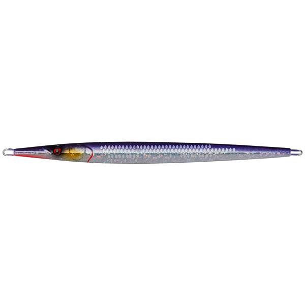 Needle Jig to wspaniała imitacja belony. Długi, smukły korpus jest niezwykle lotny i stawia niemal zerowy opór w wodzie. Geometria tej przynęty sprawa, że migota i lusterkuje ona w czasie opadu oraz odskakuje na boki i kołysze się podczas zwijania, tym samym generując błyski i wibracje poruszając się w bardzo nieregularny sposób. W środku wbudowana jest stalowa grzechotka, generująca głośne dźwięki podczas jiggowania, z daleka ściągając uwagę ryb. Needle Jig charakteryzuje się hybrydową akcją i wspaniale sprawdzi się podczas wertykalnego jiggownaia, jiggownaia z rzutu oraz wolnego jiggownaia.